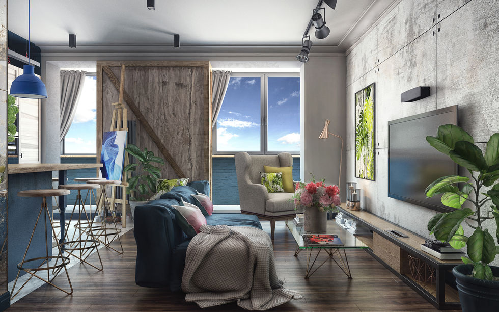 Every apartment is like a business card of its owner. Sometimes, however, nothing can be read in a business card, but not in this case. The bright, colorful interior tell that the owner is a cheerful person who leads an active lifestyle, but at the same time loves his home, his friends. He is also fond of painting and has recently started painting by himself. The latter circumstance provide us what kind of environment best for this customer.
