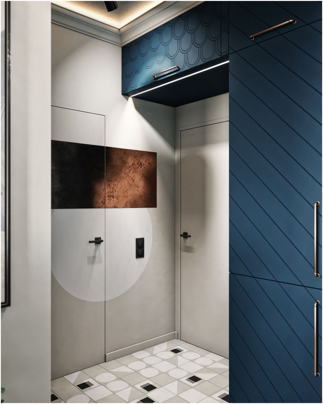 Эта квартира — место временной дислокации семьи с тремя детьми, когда они приезжают в Санкт-Петербург. Основная задача была разместить на небольшой площади основные функциональные зоны, отдельные комнаты для родителей и детей, предусмотреть спальное место для друзей. Так как в квартире не живут постоянно, заказчики были готовы к экспериментам и яркому интерьеру.