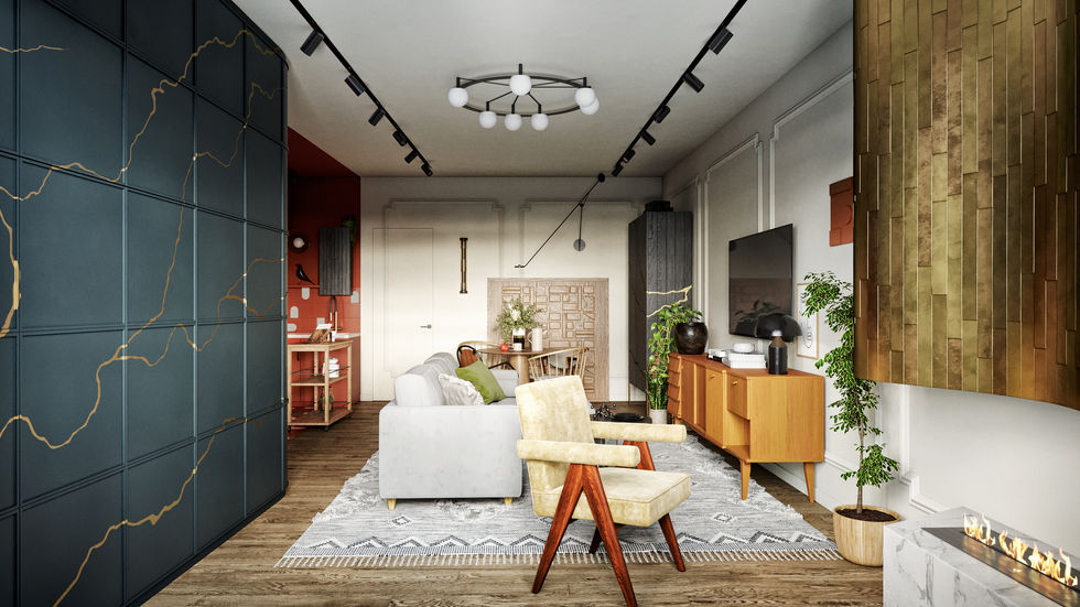 Here it was necessary to make quite a lot of different zones which will be comfortable for all family members. We wanted to equip a spacious common area and not forget about private places where you can relax and unwind. The planning was complicated by the small number of windows on the available area and the total number of load-bearing structures.