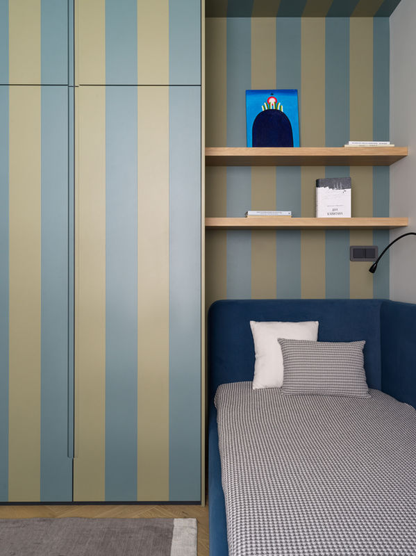The customer of this project is a family with two children. The apartment has a large area, but at the same time a non-standard shape - a semicircle. It was needed to plan and make all the functional areas that would be convenient for all family members, including a dog. As a result, the main feature of the project became the hallway-gallery that connect the public area and children's block, with their own living room, and two separate children's rooms.