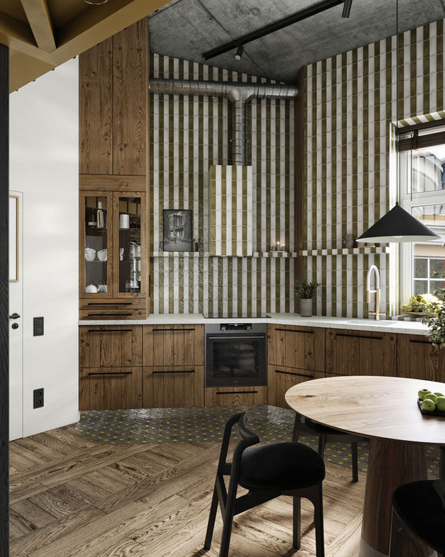 Чудесная квартира на последнем этаже в пригороде Санкт-Петербурга для прекрасной семьи. Благодаря необычным объемам изначального помещения, получилось надстроить дополнительную уровень и увеличить тем самым полезную площадь.