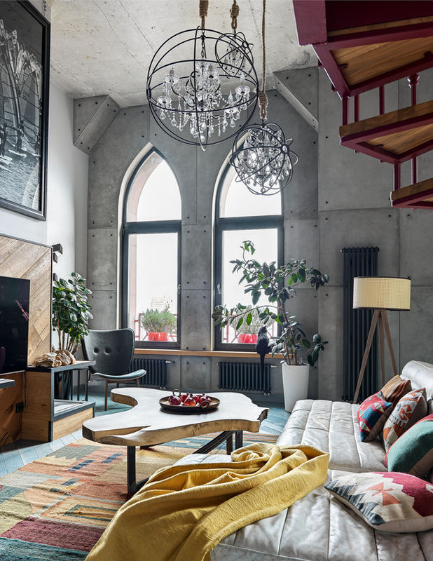 In the beginning the main idea was to redevelop a non useful volume of apartment with great ceiling hight 4.3 meter. We understood immediately that it has to be constructed a second level. Our team specializes in solving just such problems: how to properly use a non-standard space in order to make additional square meters of ergonomic space and at the same time preserve the beauty of the whole height. And we are easy to deal with!